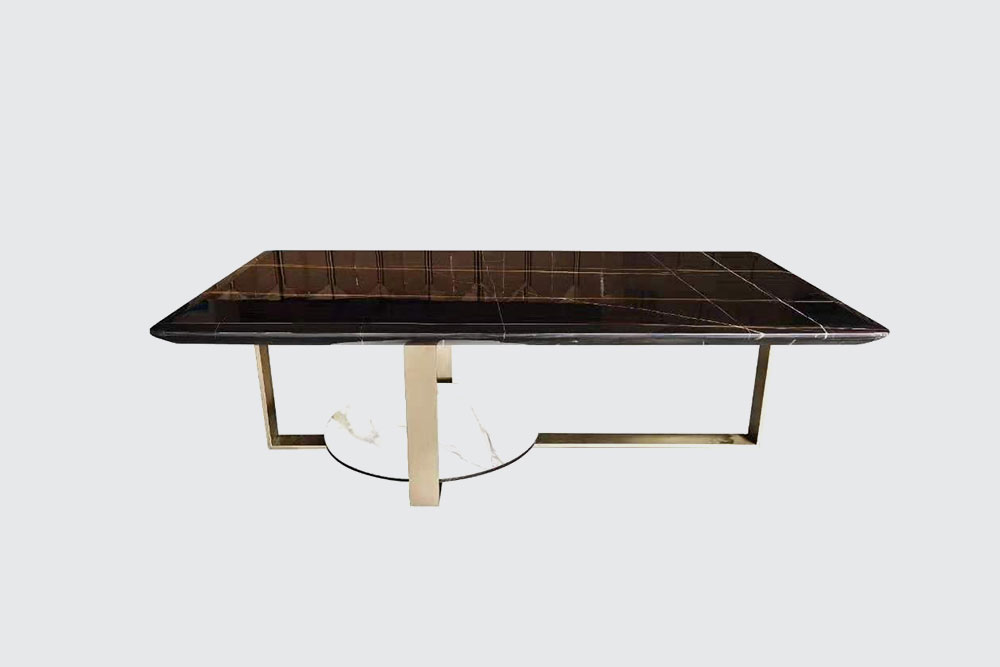 劳伦黑金天然大理石+不锈钢拉丝香槟金封釉+卡斯高金亮光岩板小圆台面